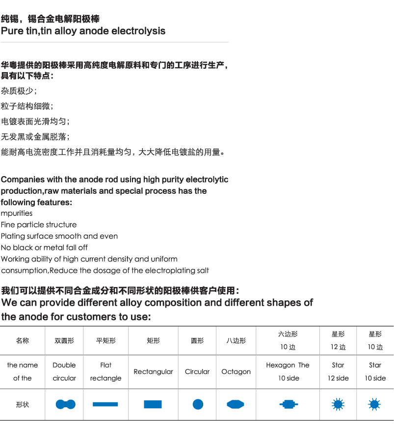 產品詳情>> 純錫/錫合金電解陽極棒